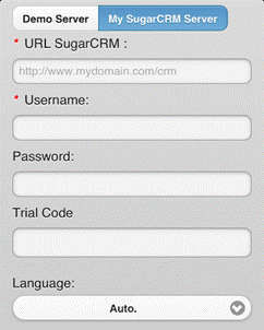 Choose "My SugarCRM Server" then enter your SugarCRM URL, your username and your password.