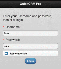 If you check "Remember Me", you will not be asked your user name and password next time you access QuickCRM.