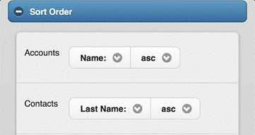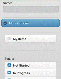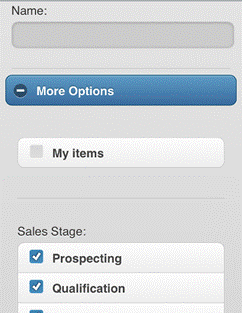 When searching for Tasks or Opportunities, the More Options button (Pro Version) you could, for example, search by Task status or Opportunity Sales stage: