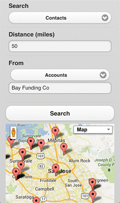 · Display on a map Contacts/Accounts/... within a given distance from a given Account/Contact/... (QuickCRM Mobile Pro)