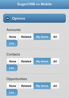 o For example, if you select My items for Accounts and Related for Opportunities, opportunities will be downloaded only for your accounts