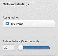 Several options are available to limit the quantity of displayed data in the calls and meetings subpanels of Accounts, Contacts, Leads or Opportunities.
