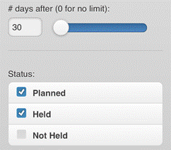 By default, only Calls and Meeting between now - 30 days and now + 30 days are displayed.