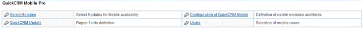 Go to the admin page and click on "Configuration of QuickCRM Mobile".