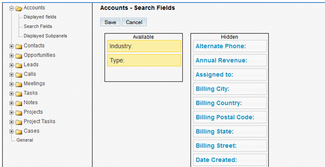 Drag and Drop the fields to be used as additional search criteria, then Save.